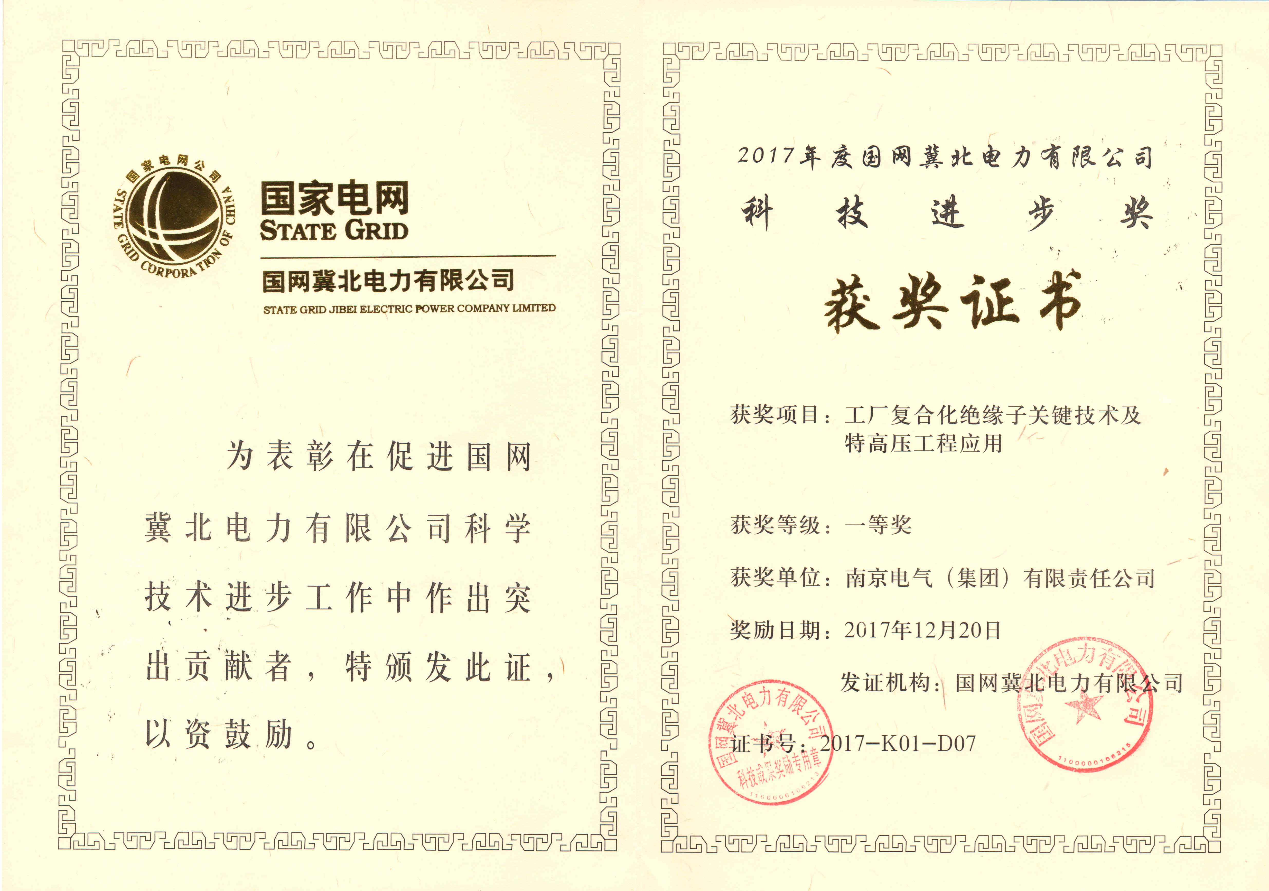南京電氣(集團)有限責任公司與國網冀北電力科學研究院、河北硅谷化工有限公司等單位共同完成的《工廠復合化絕緣子關鍵技術及特高壓工程應用》科研項目,近日榮獲國網冀北電力有限公司科技進步一等獎。...